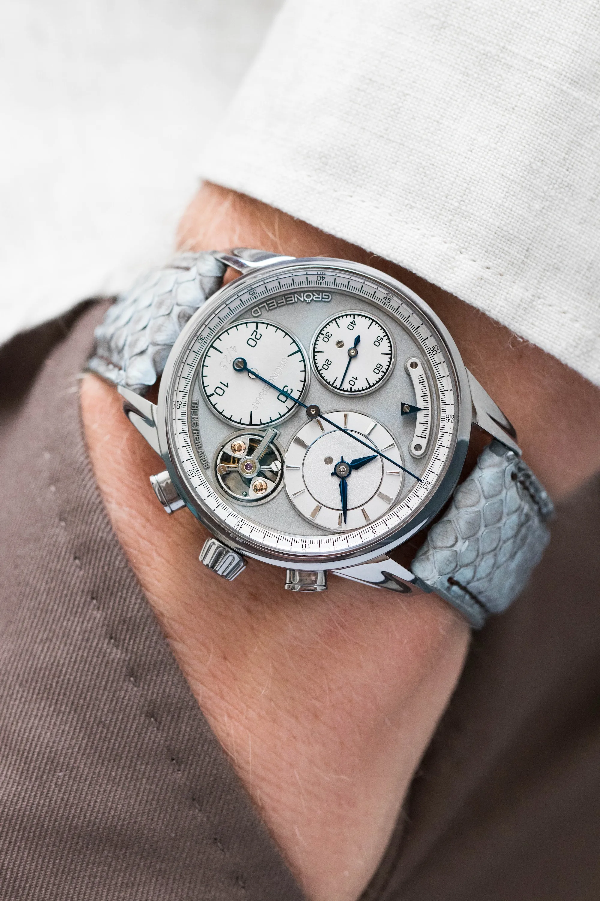 The Grönefeld family has a watchmaking history spanning over more than a century, the foundations of which were established in 1912 by Johan Grönefeld. This legacy is now managed by the third generation, The Horological Brothers Bart and Tim Grönefeld. They made it their mission to build elegant timepieces with surprising mechanisms that belong to the best in the world.