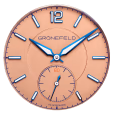 The aforementioned pane of sapphire crystal, positioned to the rear of the watch, affords views of the beautifully appointed, self-winding movement. The case back features ‘GRÖNEFELD’ and ‘DELTAWORKS’ in relief, while the name ‘Oldenzaal’ is discretely engraved opposite the crown, an elegant reminder of where the Grönefeld family’s watchmaking story began.