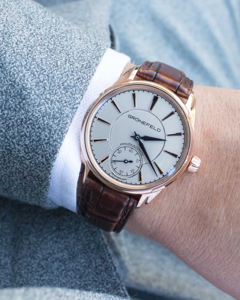 In normal use, the wearer does not need to operate the crown, mitigating the risk of harm to the crown stem. This Grönefeld Principia automatic watch confers convenience, making it ideal for daily use.