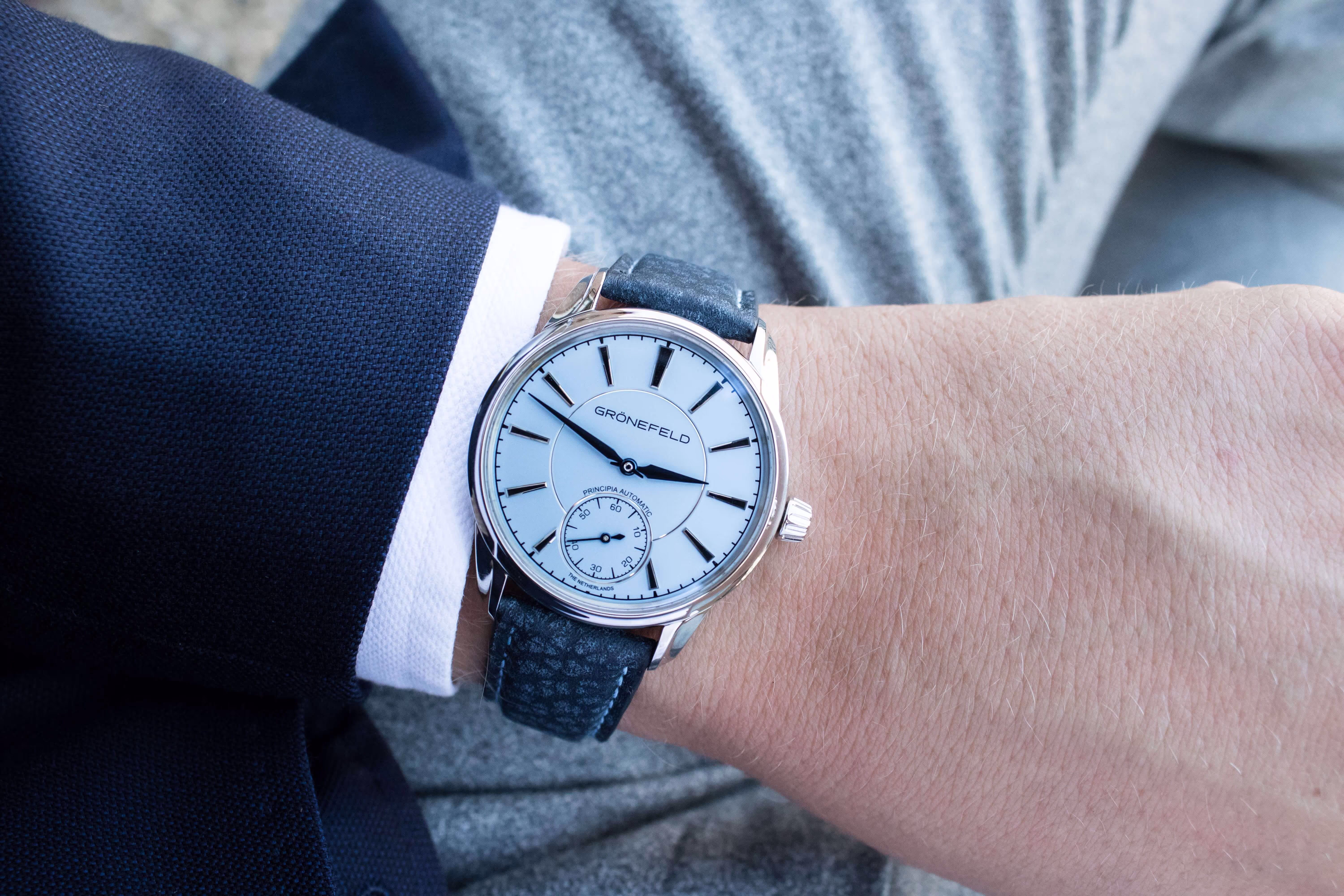 In normal use, the wearer does not need to operate the crown, mitigating the risk of harm to the crown stem. This Grönefeld Principia automatic watch confers convenience, making it ideal for daily use.